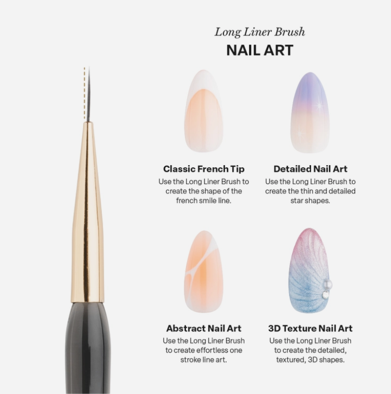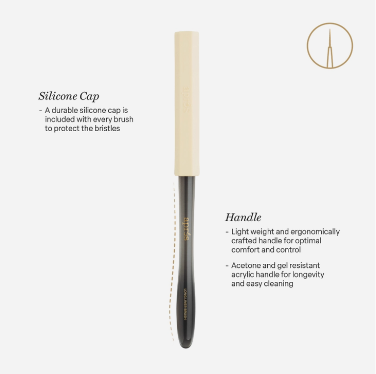 The Aprés Long Liner Brush is ideal for detailed line work, from long, even strokes to short, precise designs. Offering unmatched control and accuracy, it’s a must-have for intricate nail artistry. Crafted with durable 12mm PBT bristles, this brush withstands regular use without warping or shedding.