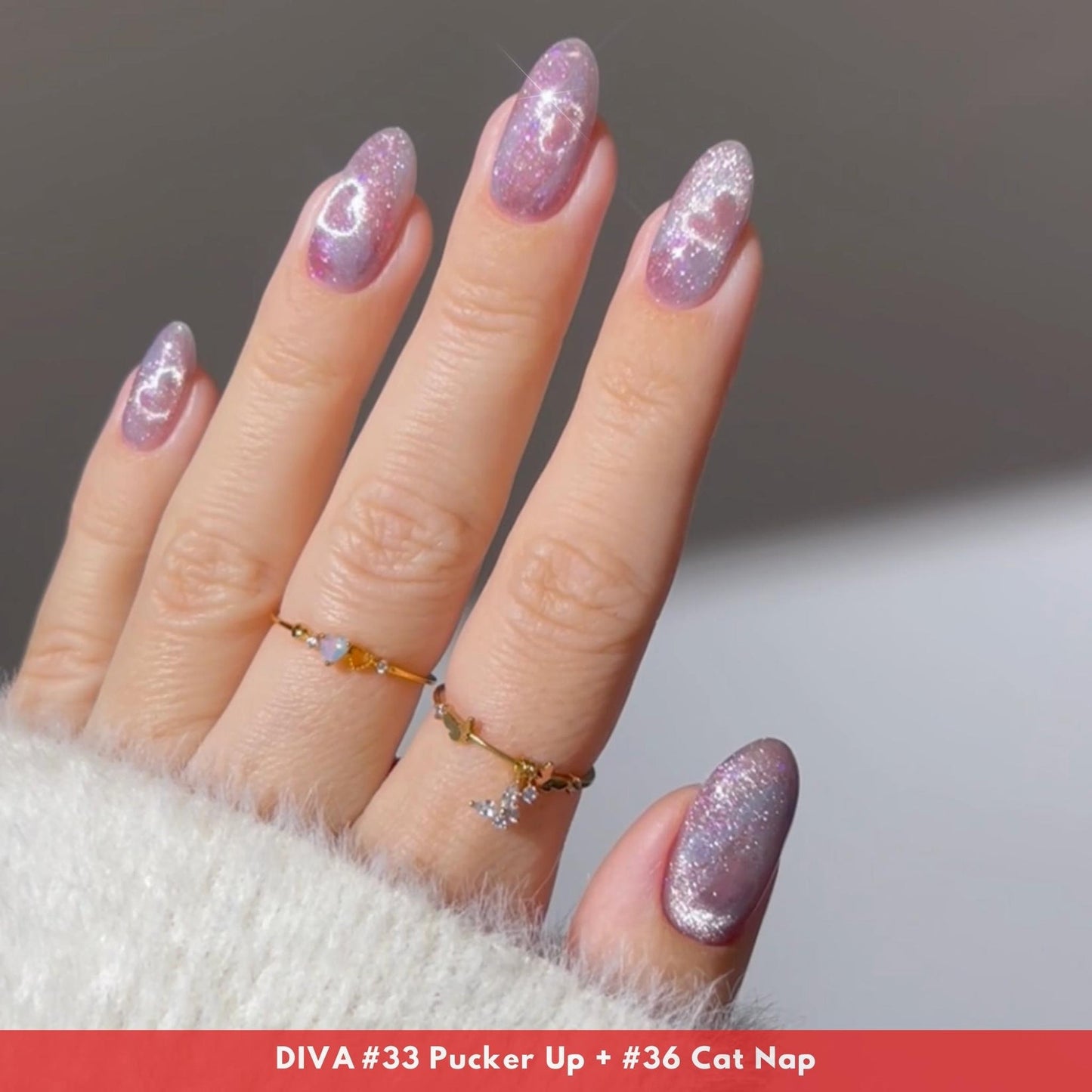 Dreaming of the perfect lilac pink with opalescent flakes? Wake up to kitty kisses and a manicure that feels like a romantic daydream! DIVA 'Pucker Up' is a lavender-rose cat eye that shimmers with soft, opalescent light, creating a flirty yet elegant look.